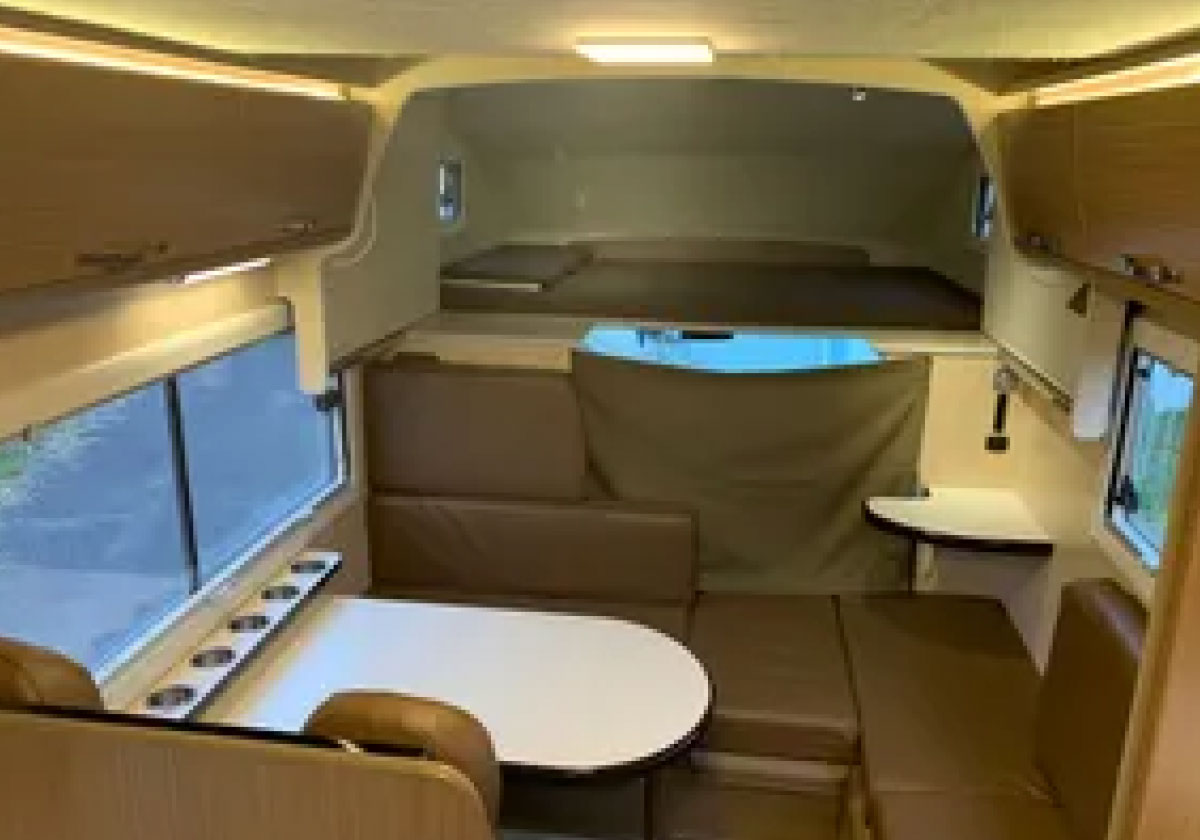 ・こちらのキャンピングカーは、風の影響を受けにくく、事故率が非常に低いハイエースを基にした低い車高のキャブコンは、車高が高く風に煽られやすいトラックベースのキャブコンとは異なり、優れた走行安定性を提供します。